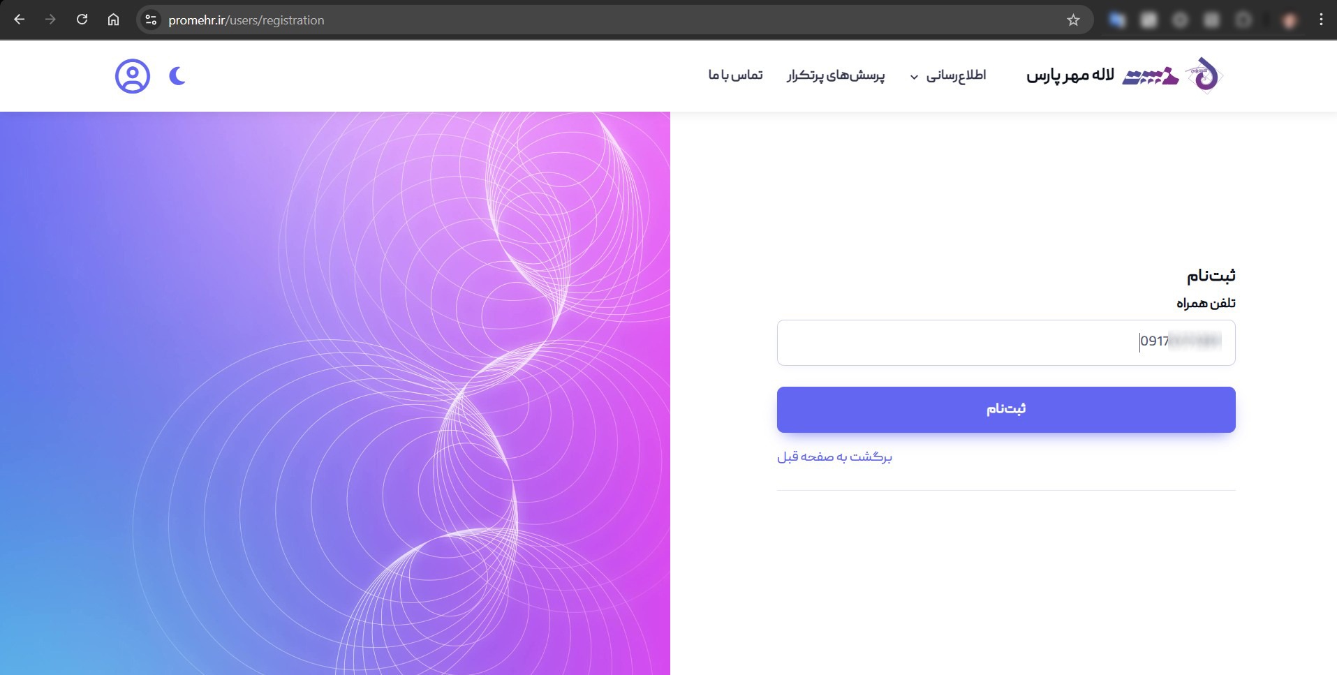 در این بخش یک شماره همراه معتبر وارد کرده و گزینه ثبت‌نام را بزنید.